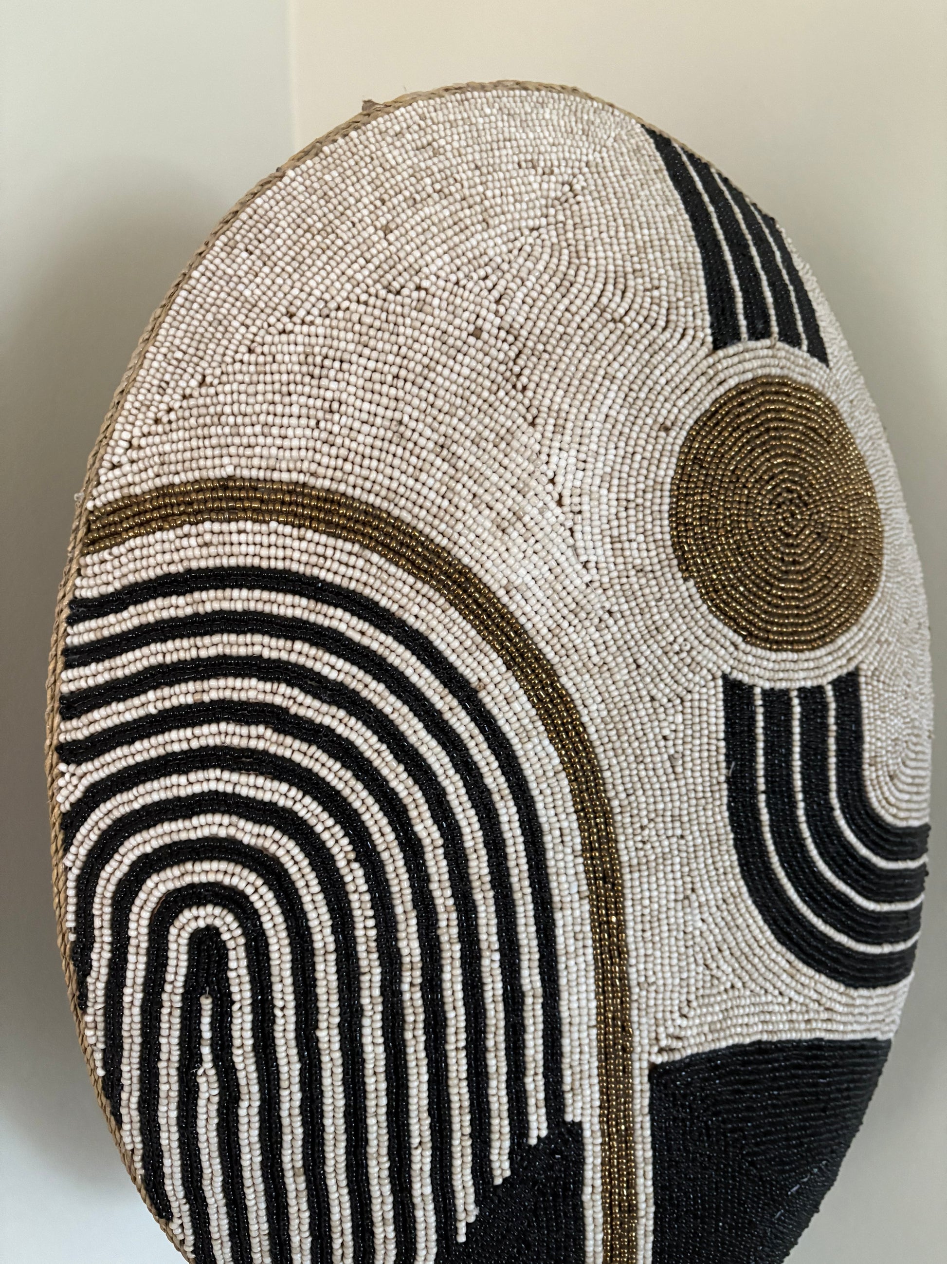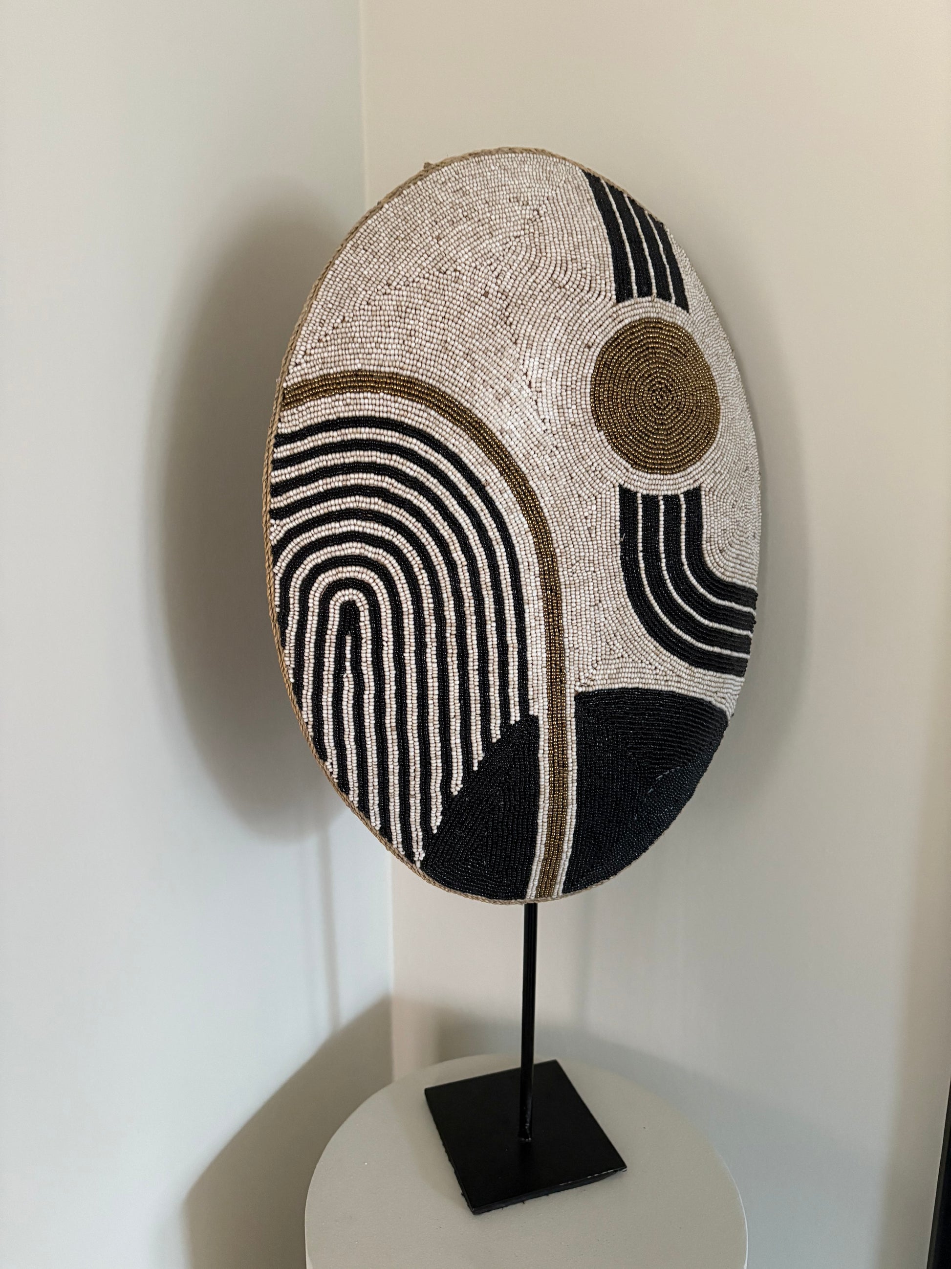 Kralenschild | Handgemaakt | Ornament zwart/beige/goud | 70cm hoog