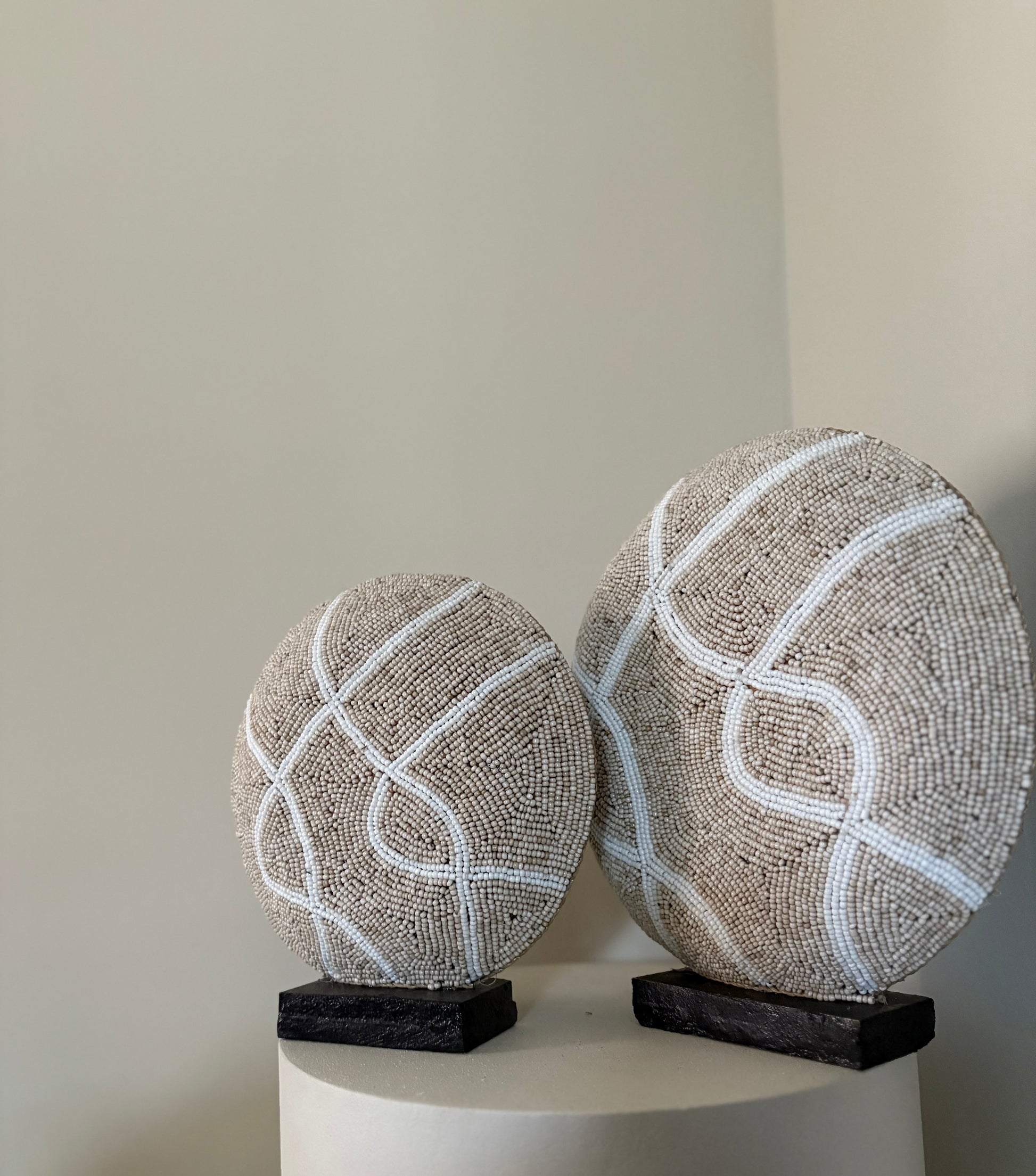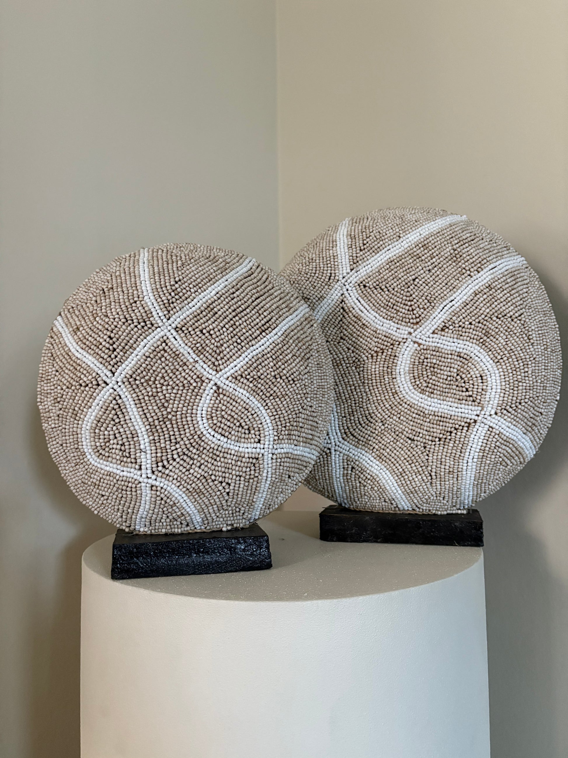Set van twee ornamenten | Kralenornamenten | Vakkenkast decoratie | Beige creme