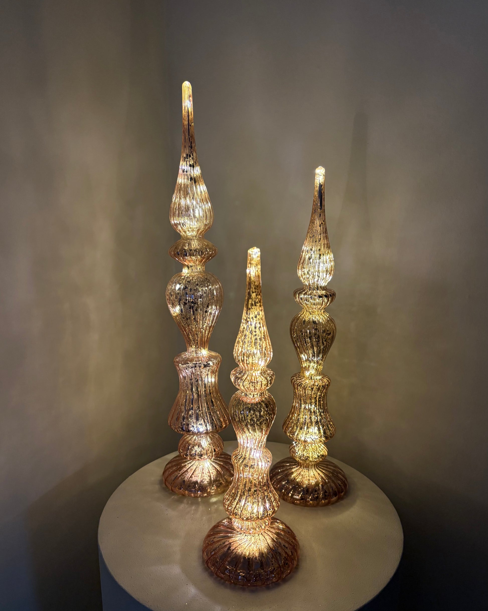 Deze gezellige en sfeervolle set van drie kerstpieken met sfeerverlichting zijn de trend van dit moment. Deze kerstpieken geven een sfeervolle kerstsfeer aan je interieur. De set bestaat uit drie pieken die werken op AA batterijen, ze geven een warm sfeerlicht af!