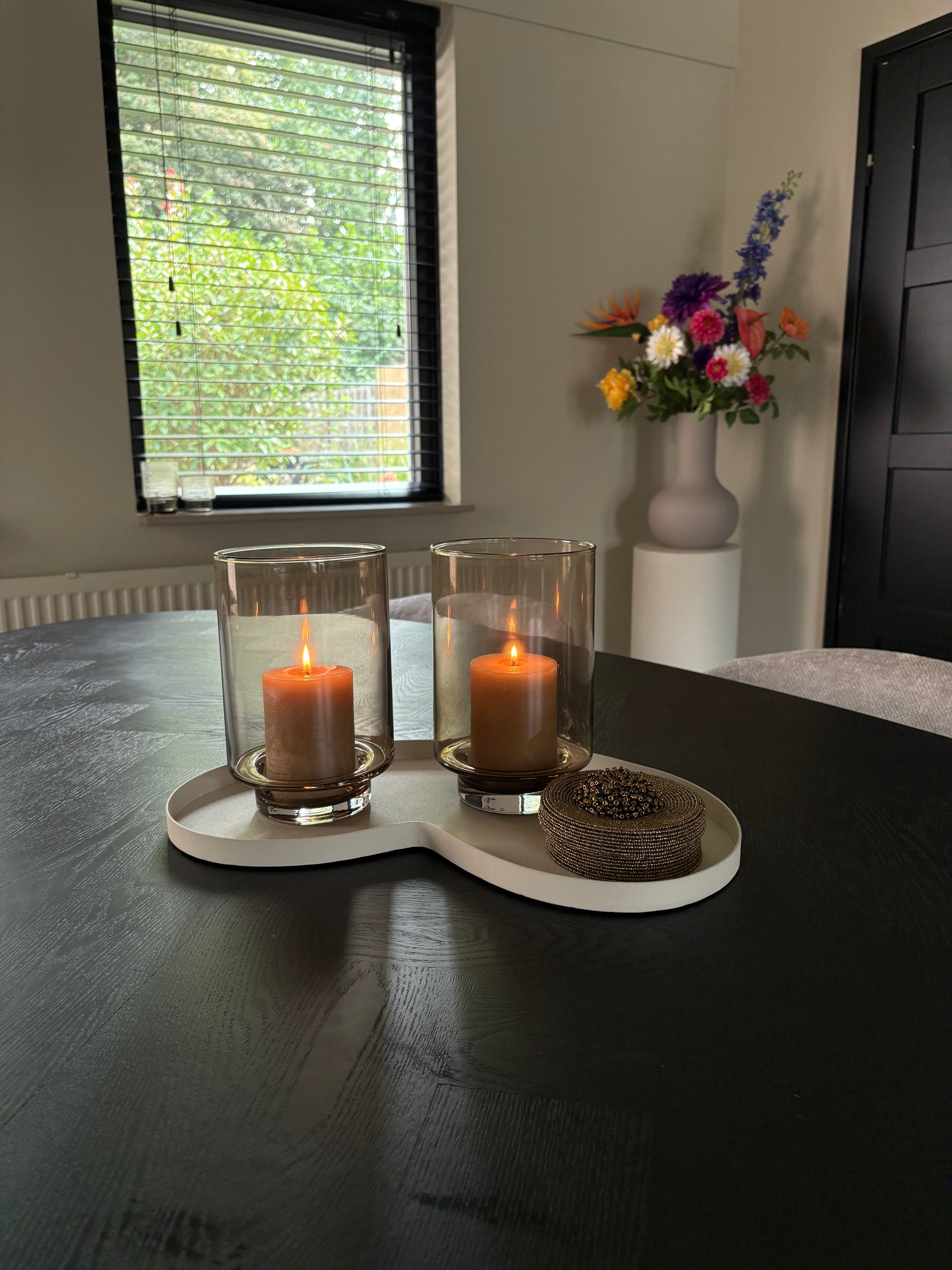 De windlichten gaan per stuk. De Thames smoke windlicht is niet zomaar een cylinder, het is een super stijlvol model die letterlijk op een voetstuk geplaatst is. Zowel geschikt voor een mooi boeket als voor een rustieke kaars. Heb jij 'm in gedachte al een mooi plekje gegeven?