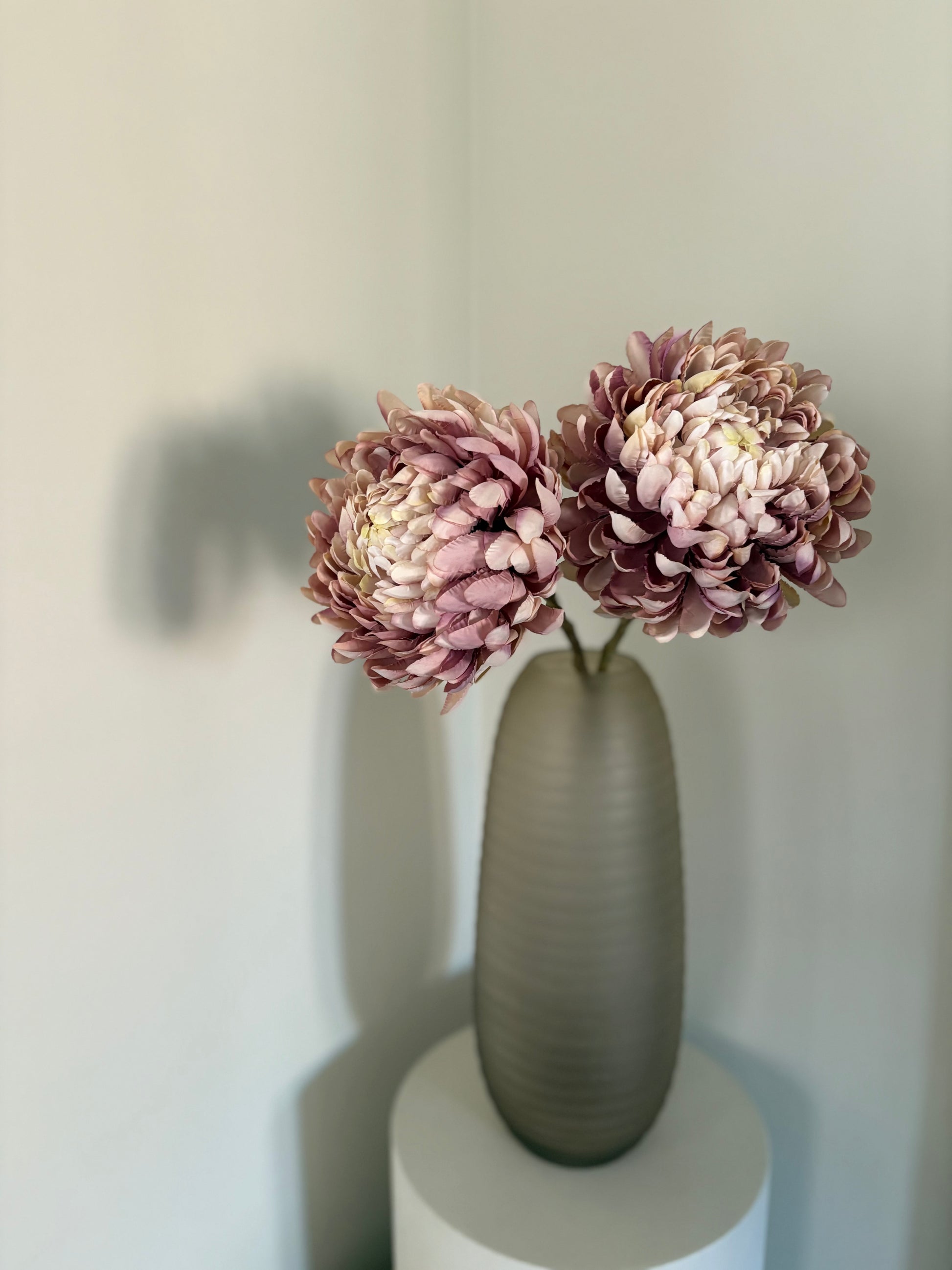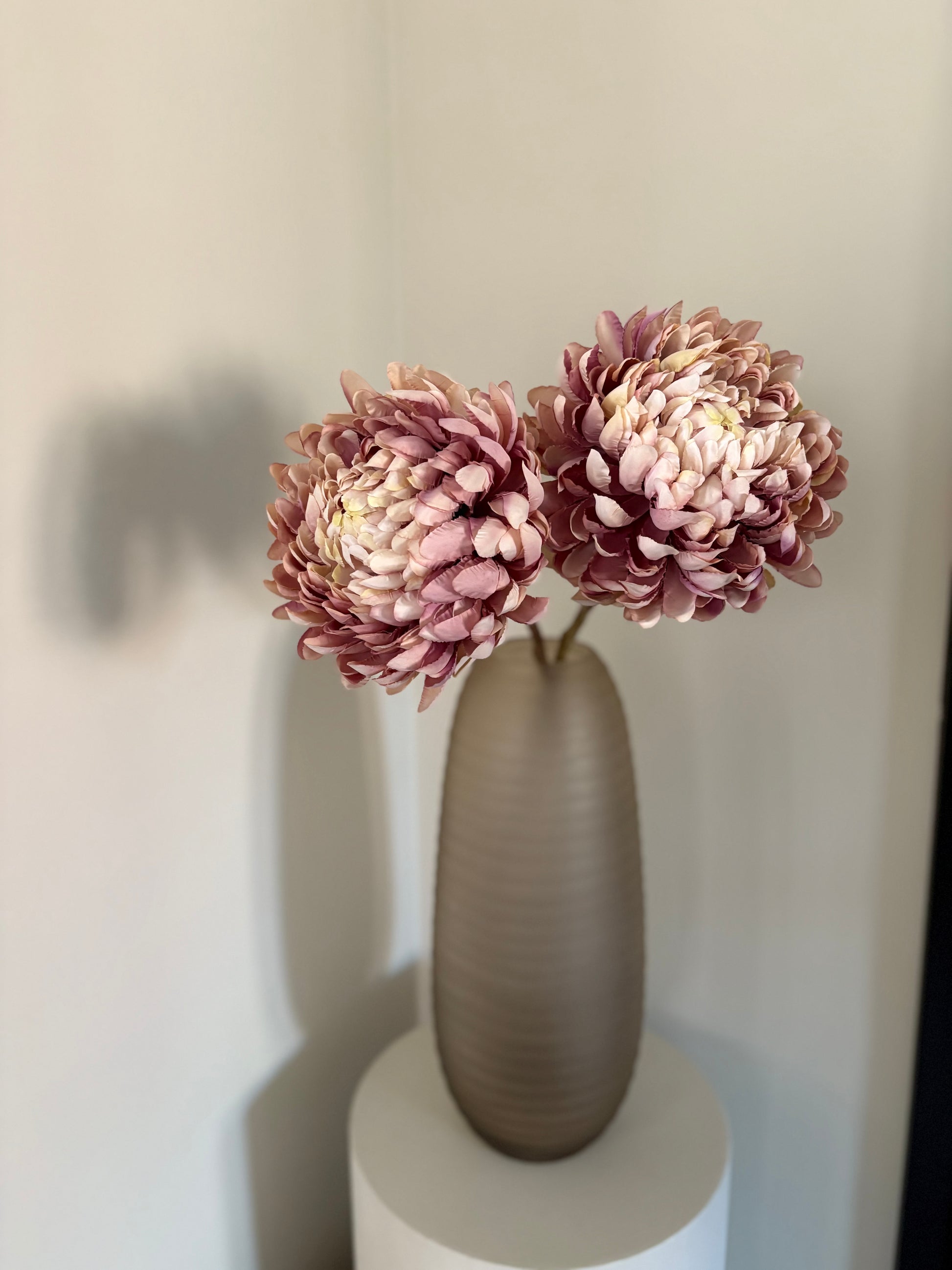 Prachtig grote zijden Chrysanten in een mauve kleur. Deze zijden Chrysanten zijn van een luxe kwaliteit, ze zijn een opvallende toevoeging aan je boeket of schik ze samen in een vaas.