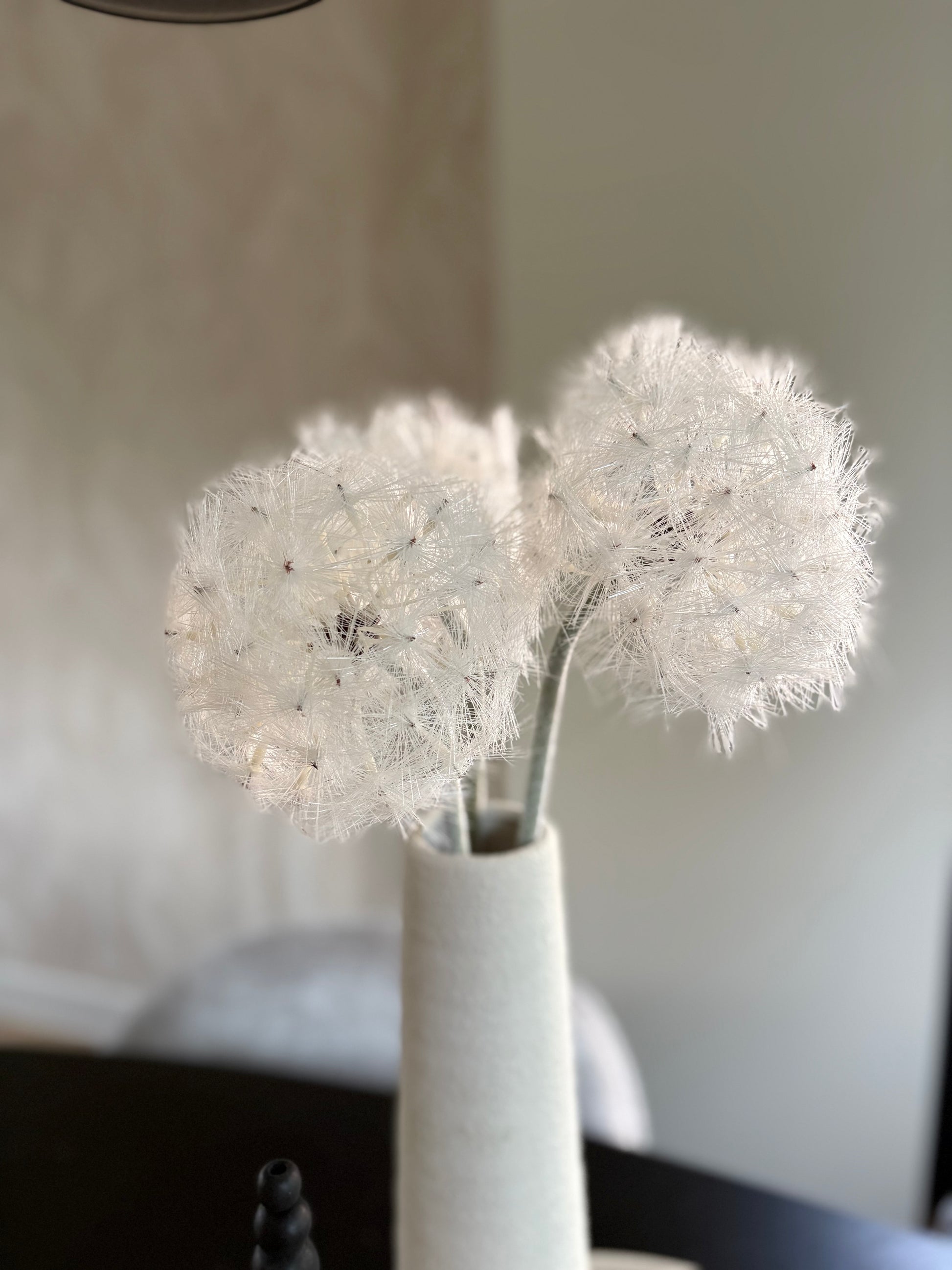 Prachtige zijden Allium, ook wel paardenbloem. Deze Allium is een prachtige opvallende zijdentak voor je interieur. Combineer met een van onze chique vazen!