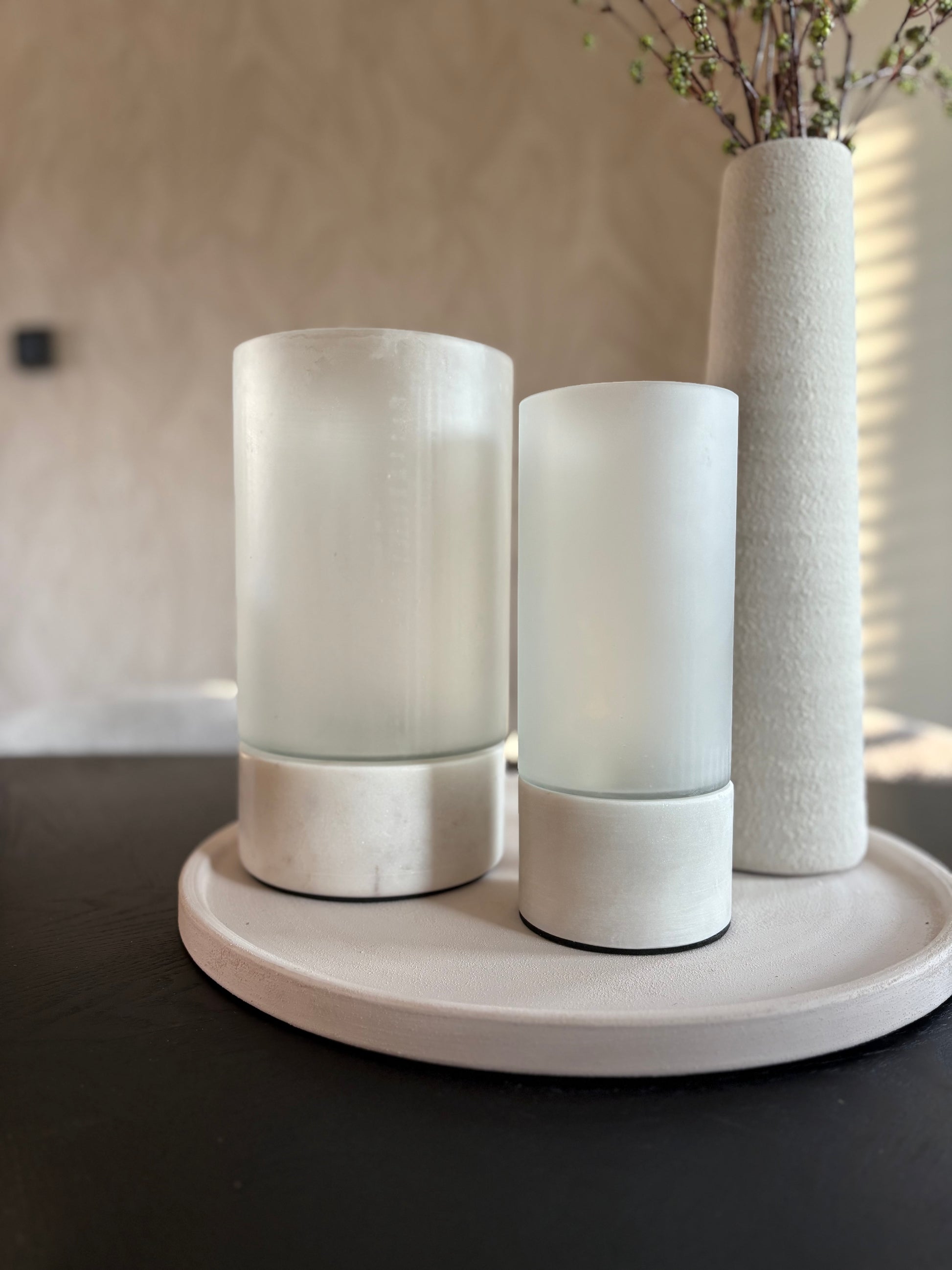 Luxe windlicht PTMD | Marmeren voet | Hotelchique | Maat M | 10.0 x 10.0 x 25.0 cm