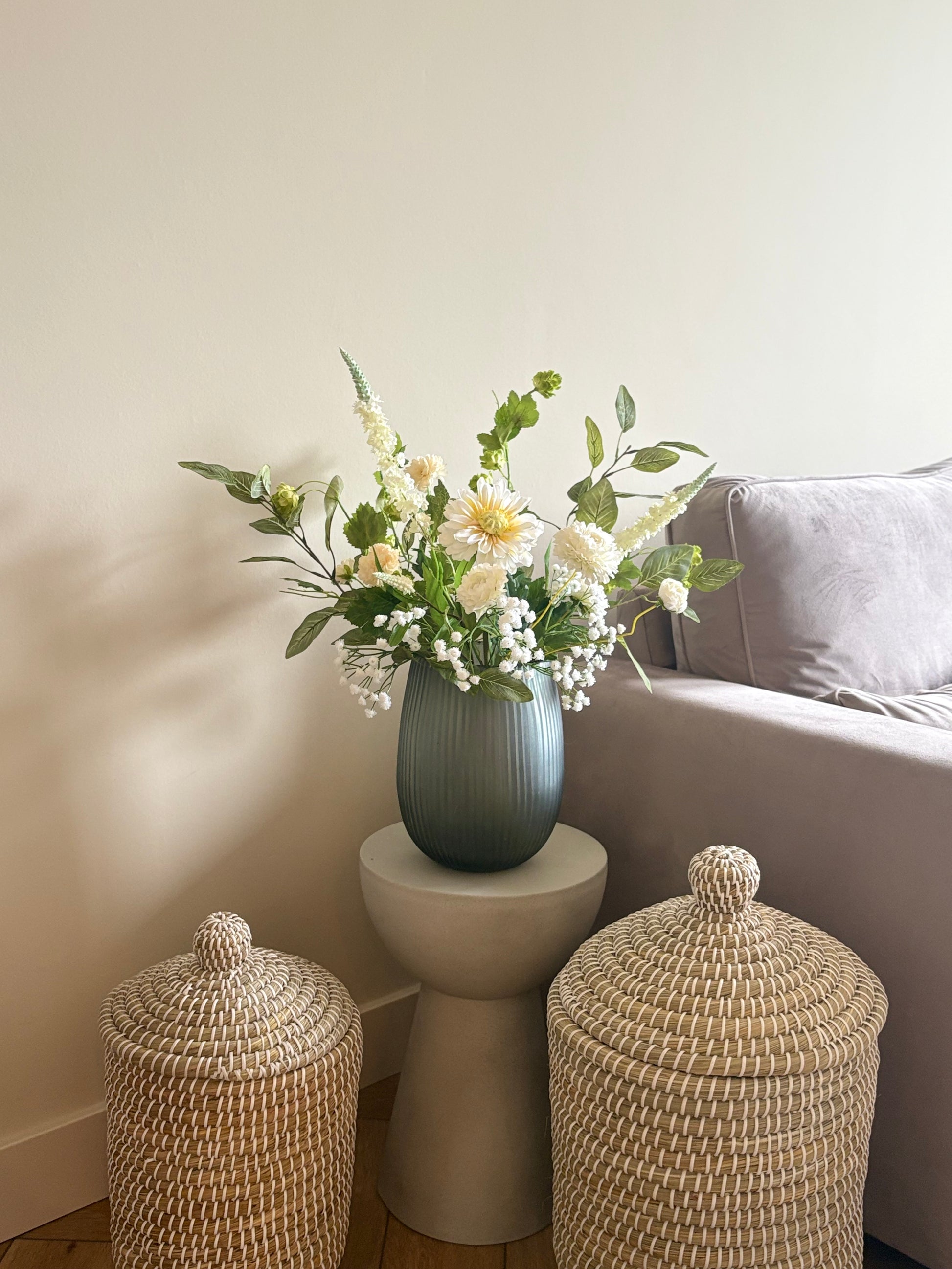 Dit zijdenboeket Japandi is veelzijdig in gebruik. Plaats het bijvoorbeeld als rustige blikvanger op je salontafel voor een verfijnde uitstraling in de woonkamer. Of kies ervoor om het boeket op de eettafel te zetten, waar het sfeer creëert tijdens ontbijt en diner zonder te overheersen. Ook op een bijzettafel of dressoir komt dit boeket prachtig tot zijn recht. Dankzij de rustige kleuren en het minimalistische ontwerp blendt het moeiteloos in jouw Japandi interieur, waar natuurlijke materialen, rust, eenvoud en een opgeruimde uitstraling centraal staan.