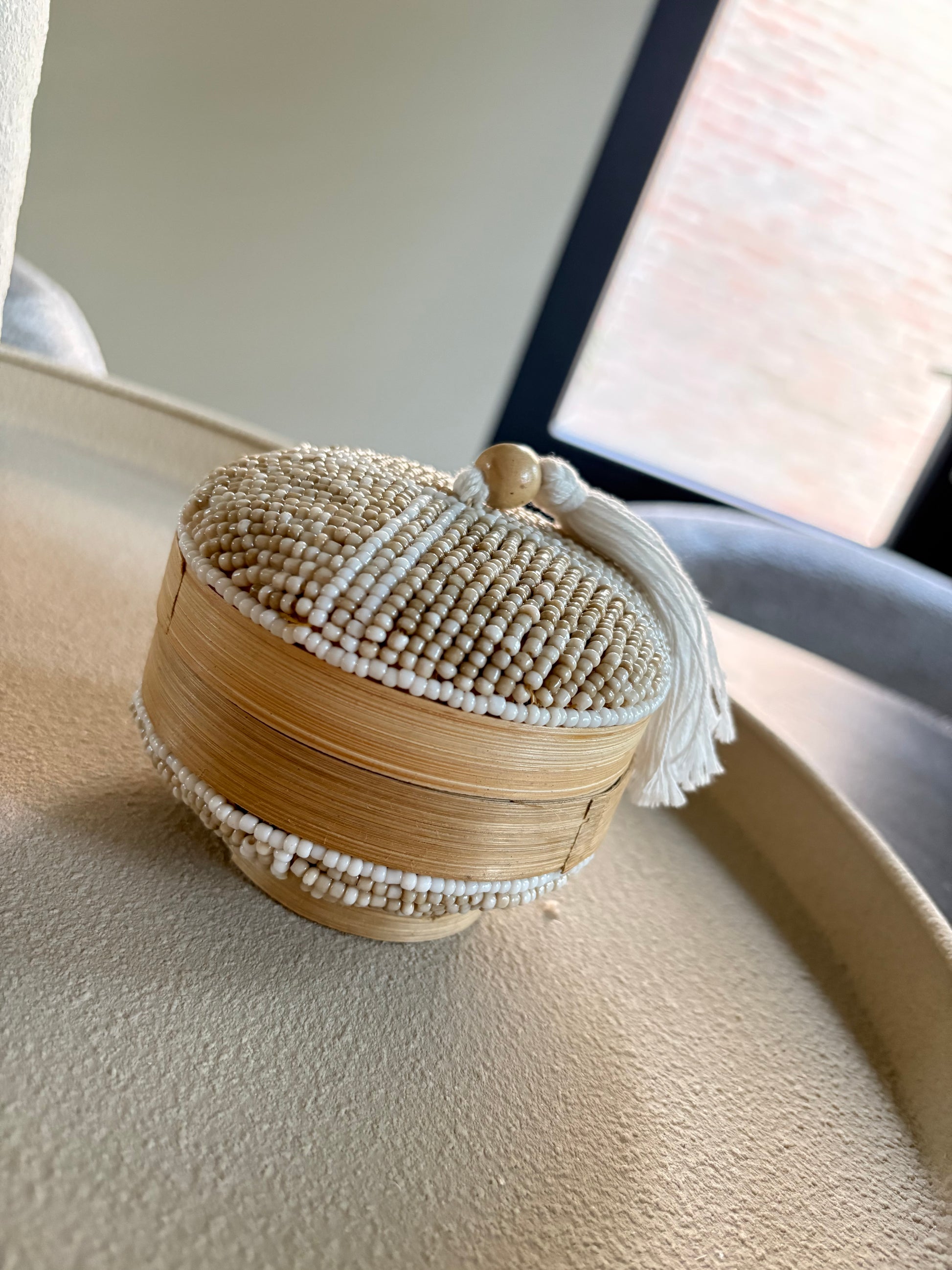 Een kralenmand of kralenmanden set voegt textuur en verfijning toe aan je interieur. De kralen zijn vaak met de hand bevestigd in patronen die symbool staan voor bescherming, geluk of harmonie – ideaal voor een serene sfeer in huis.