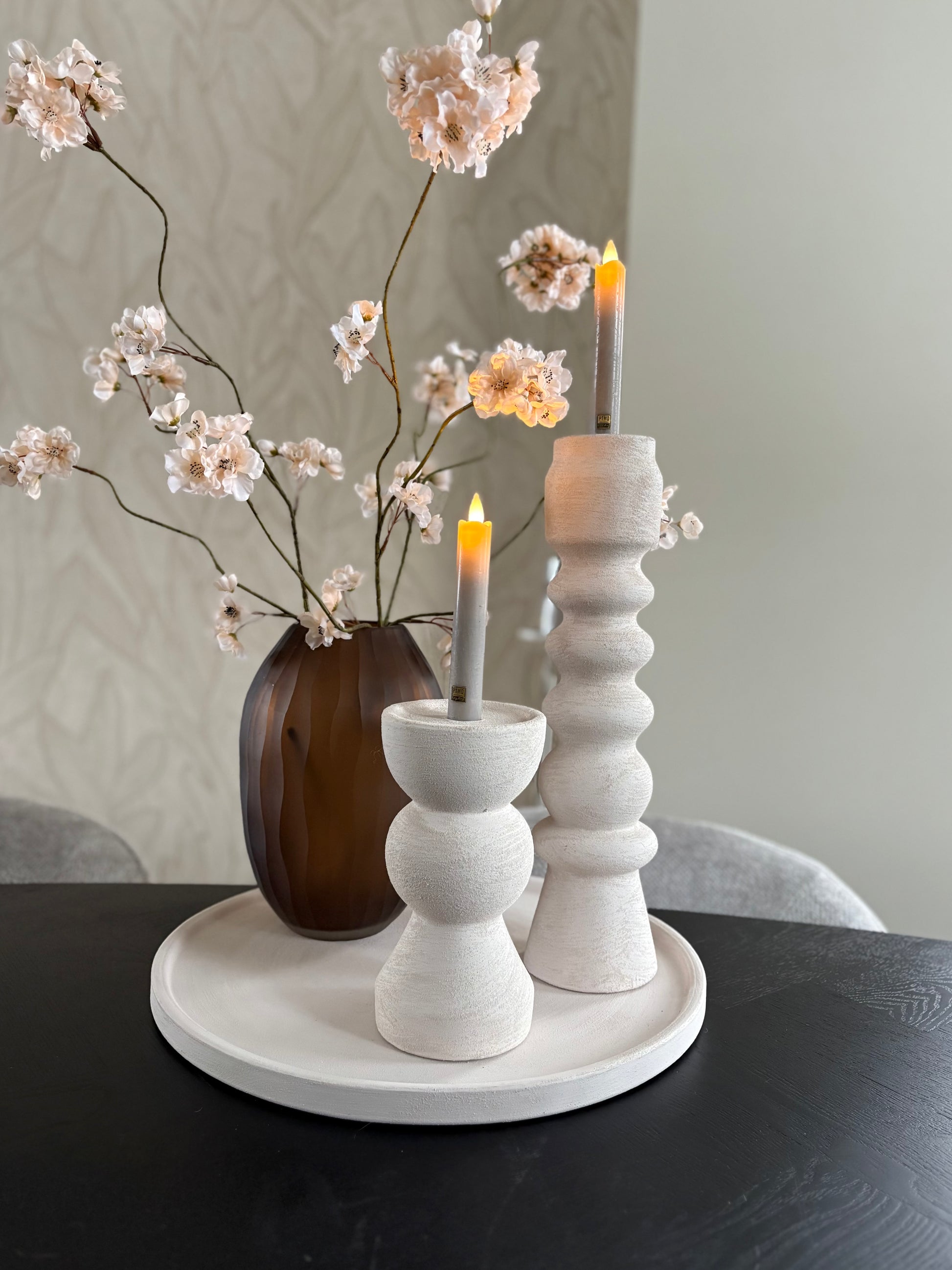 Japandi kandelaren | Beige | Aardewerk kandelaren | Set van drie