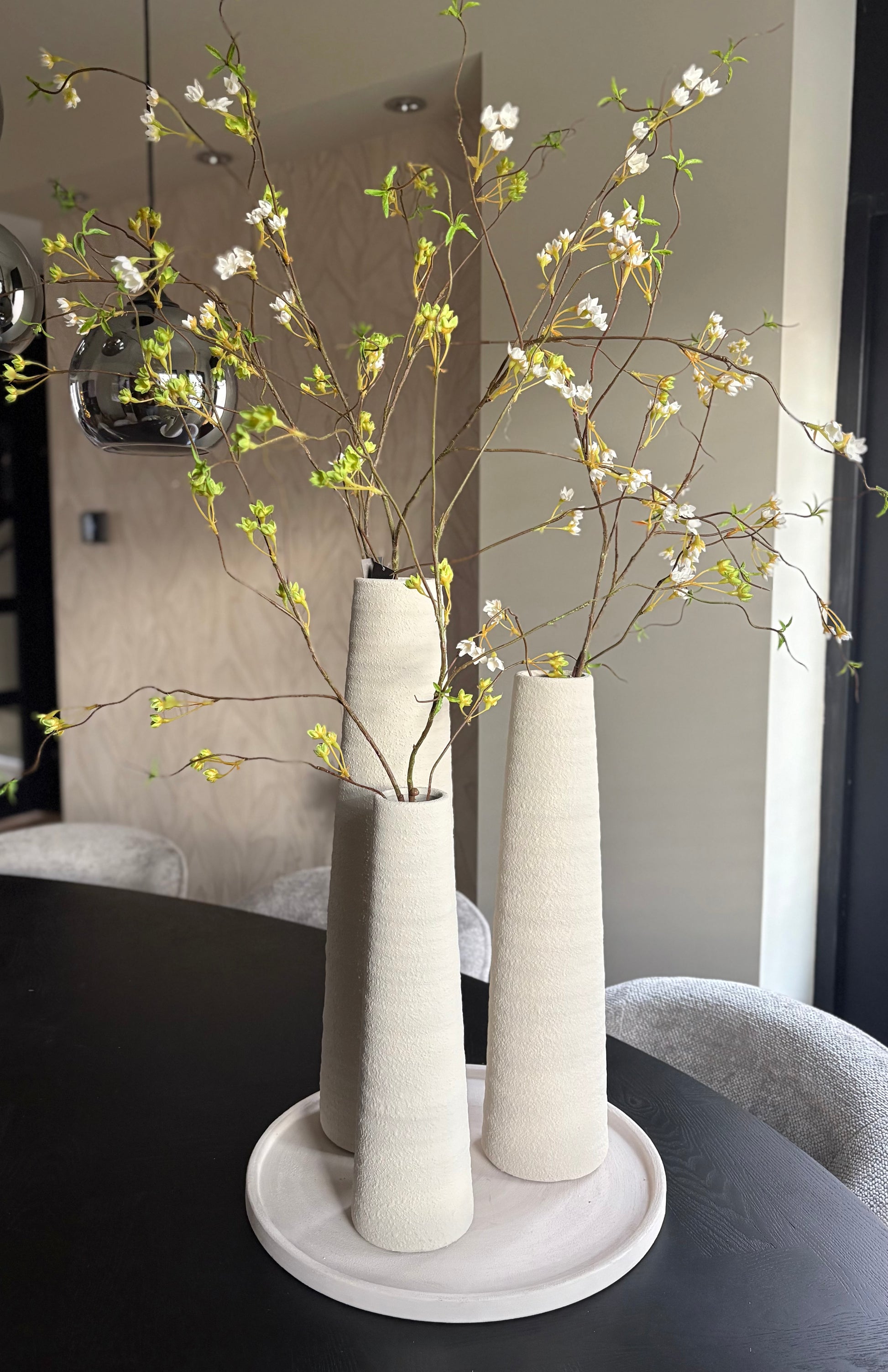 TIP: De Japandi vazen zijn een goede combinatie met onze zijdenbloesemtakken, houdt het natuurlijk door beige zijdenbloesemtakken toe te voegen of geef je interieur wat meer kleur met onze prachtige paarse zijdenbloesemtakken. De Japandi vazen zijn te combineren met iedere kleur!
