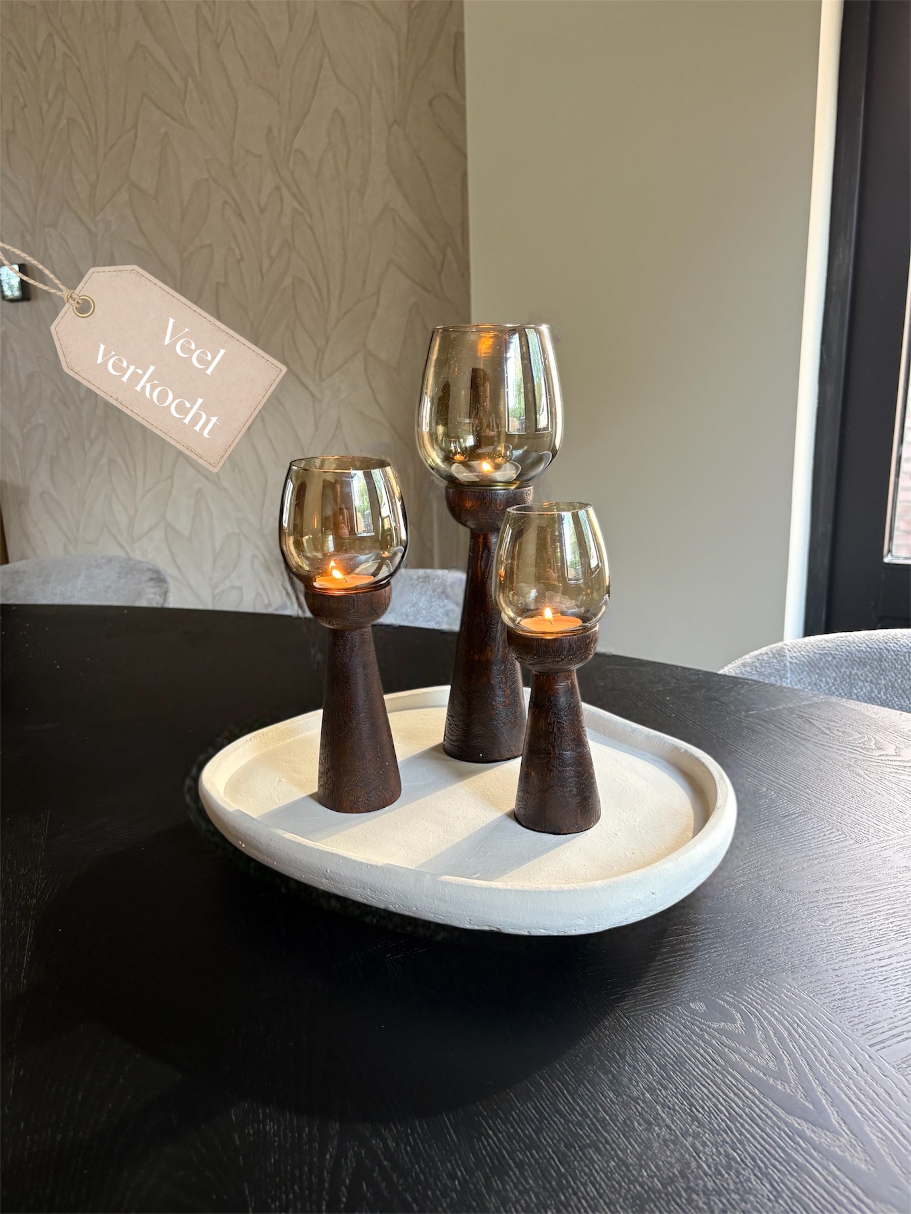 Kandelaar mango hout | Maat S | Gold luster glas | 20cm | Japandi