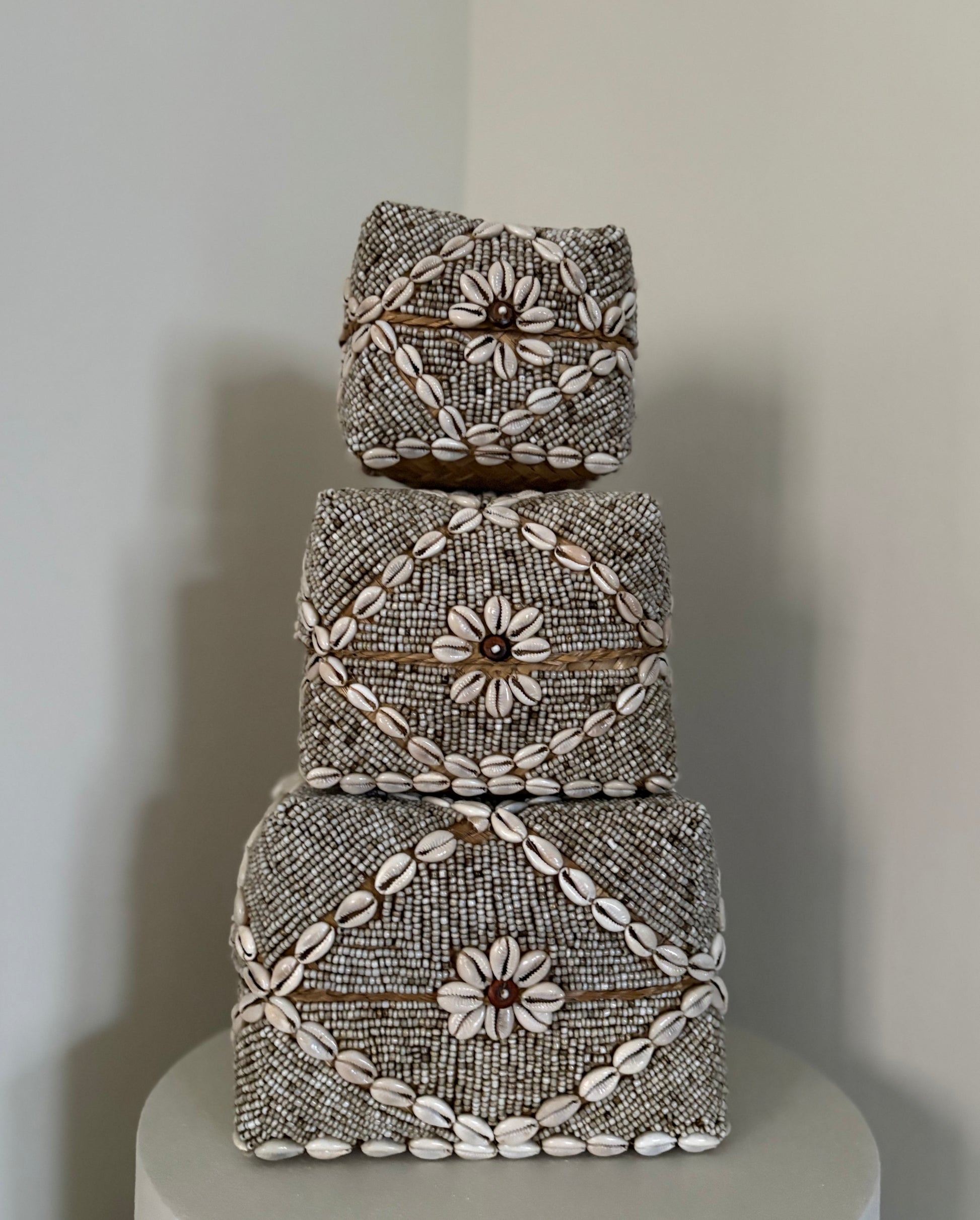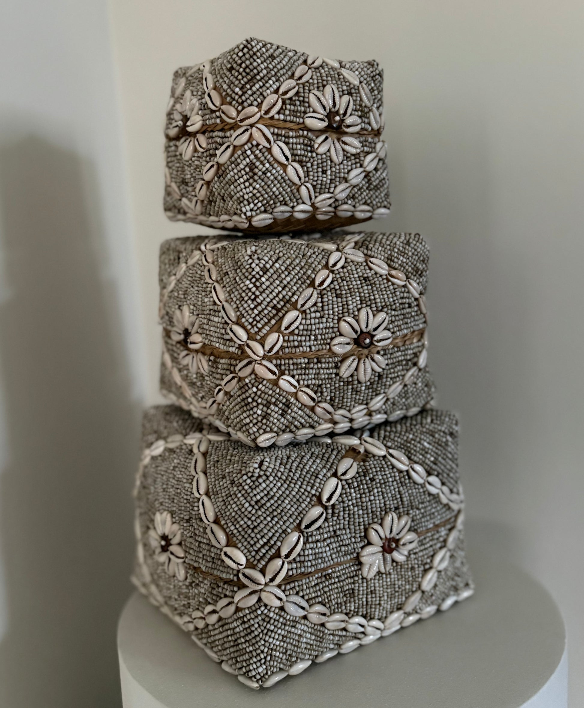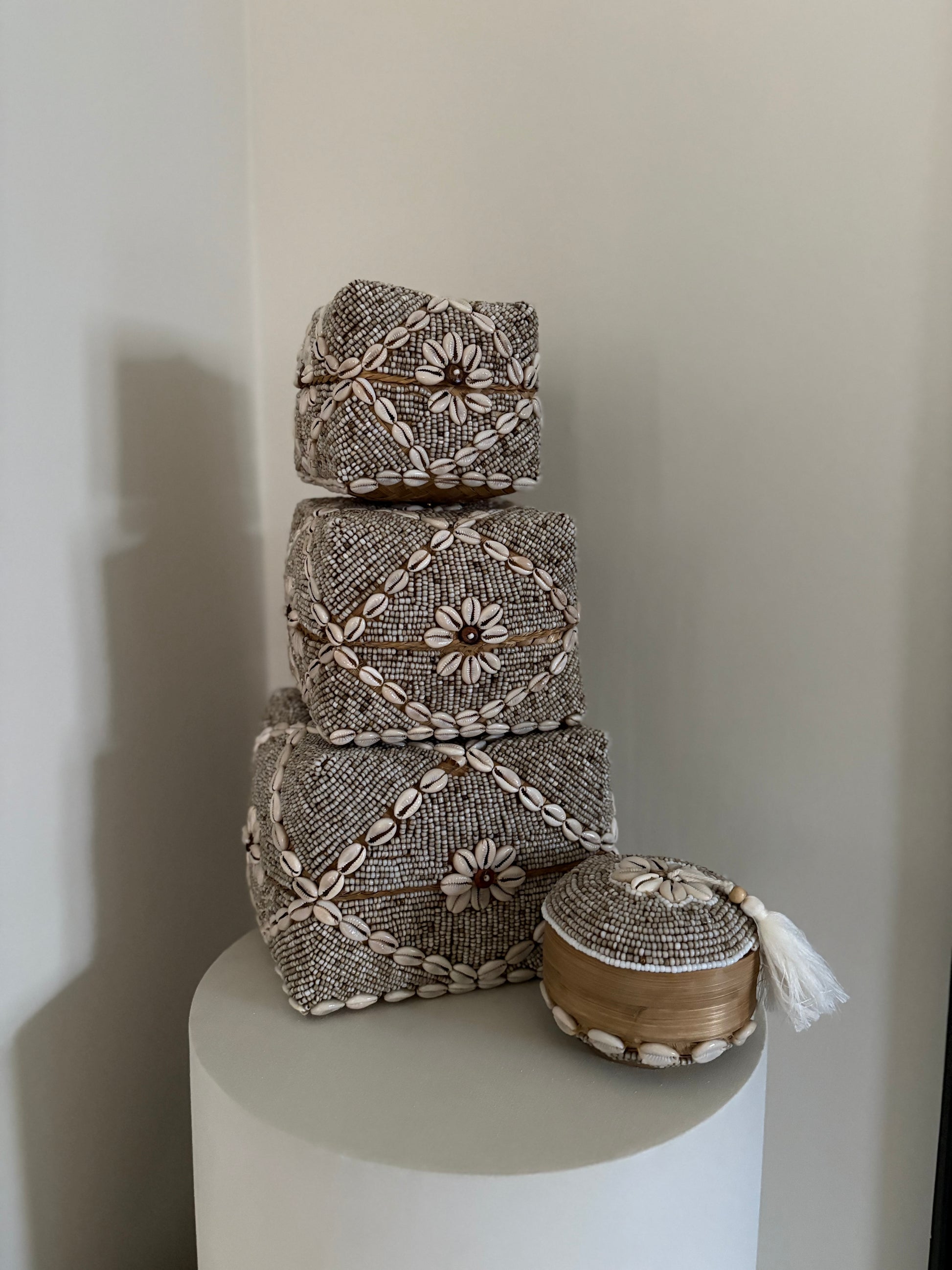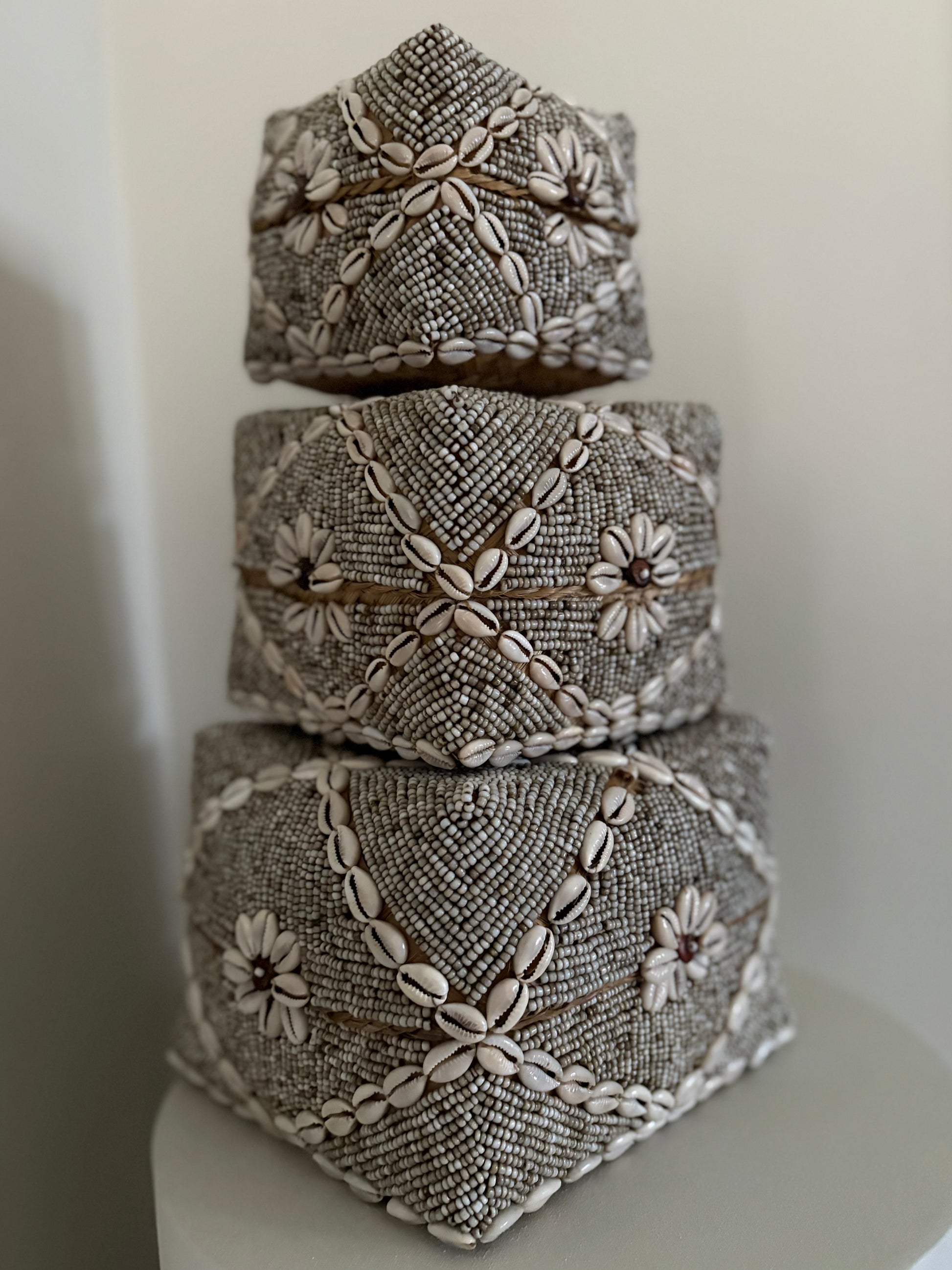 – Kleur: Beige met kauri schelpen