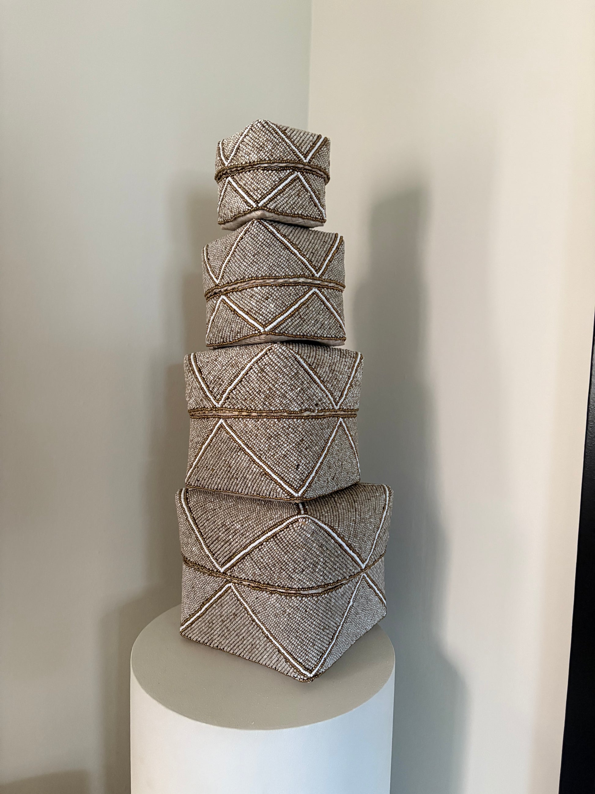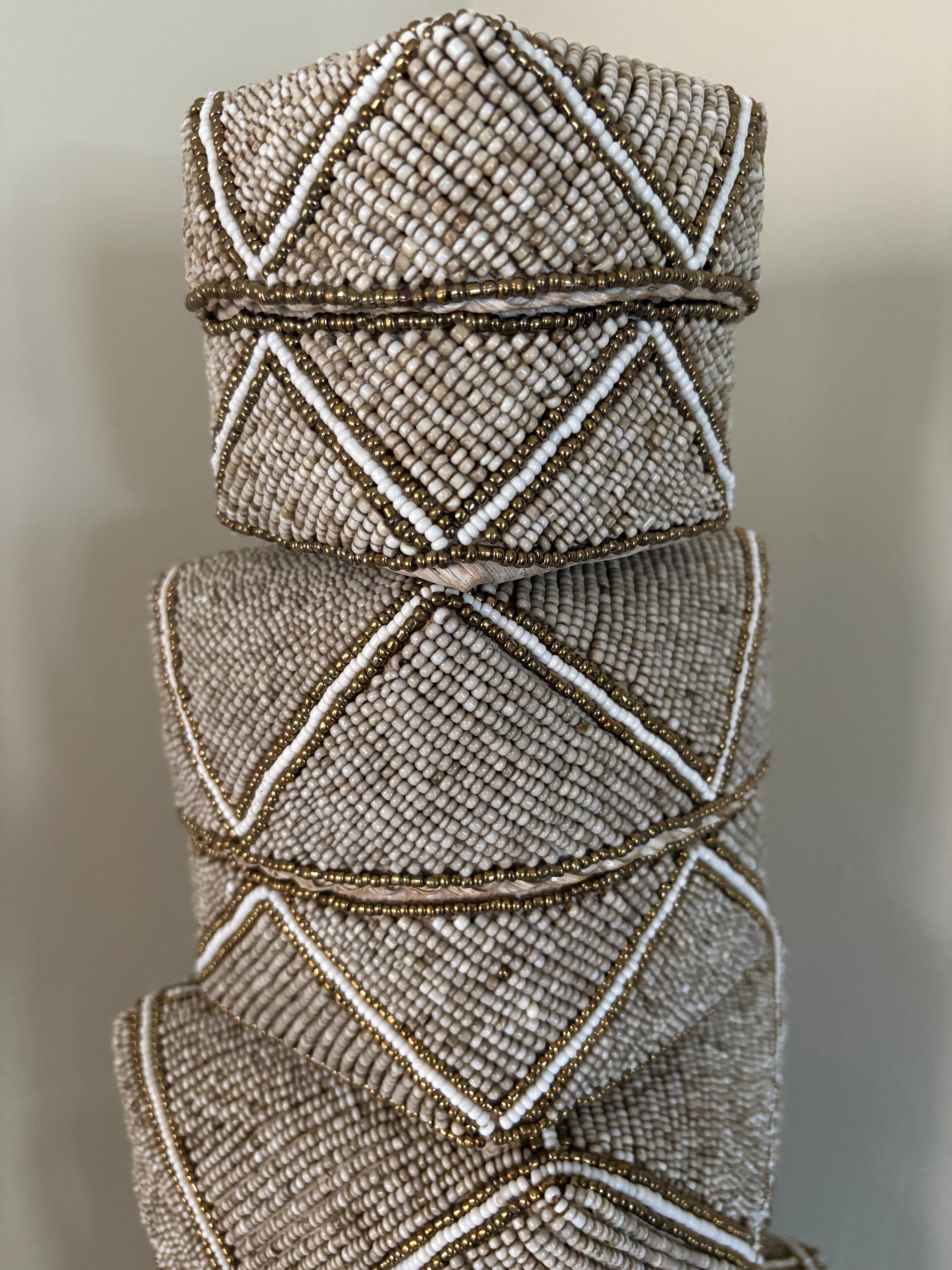Een kralenmand of kralenmanden set voegt textuur en verfijning toe aan je interieur. De kralen zijn vaak met de hand bevestigd in patronen die symbool staan voor bescherming, geluk of harmonie – ideaal voor een serene sfeer in huis.