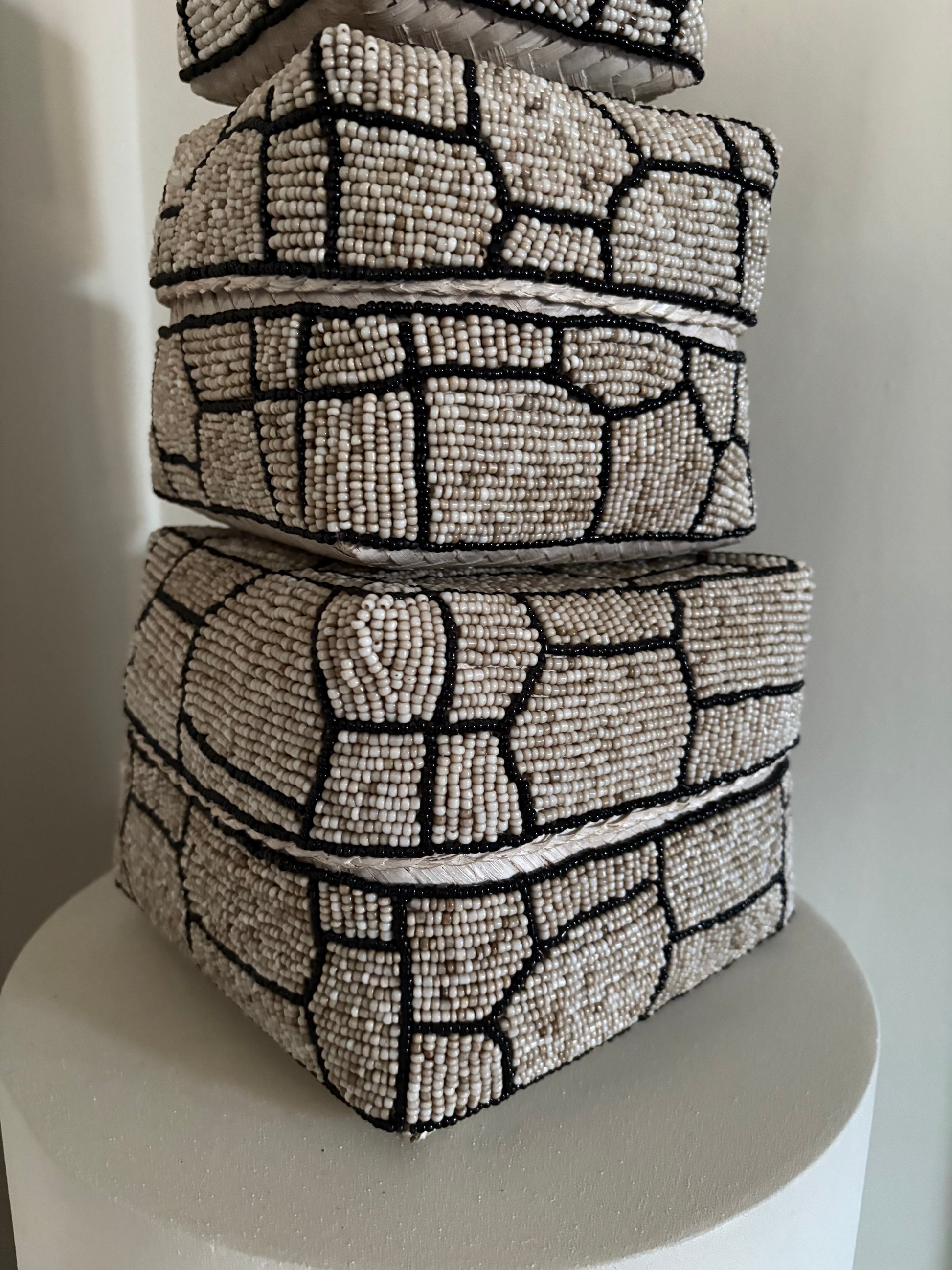 Deze elegante opbergboxen zijn met de hand gevlochten van natuurlijke palmbladeren en volledig versierd met glaskralen. Deze prachtige offermanden zijn de eye catchers voor je interieur, gebruik ter decoratie voor in de vakkenkast, of op een dressoir. Daarnaast is het een stijlvolle manier om kleine items in op te bergen!