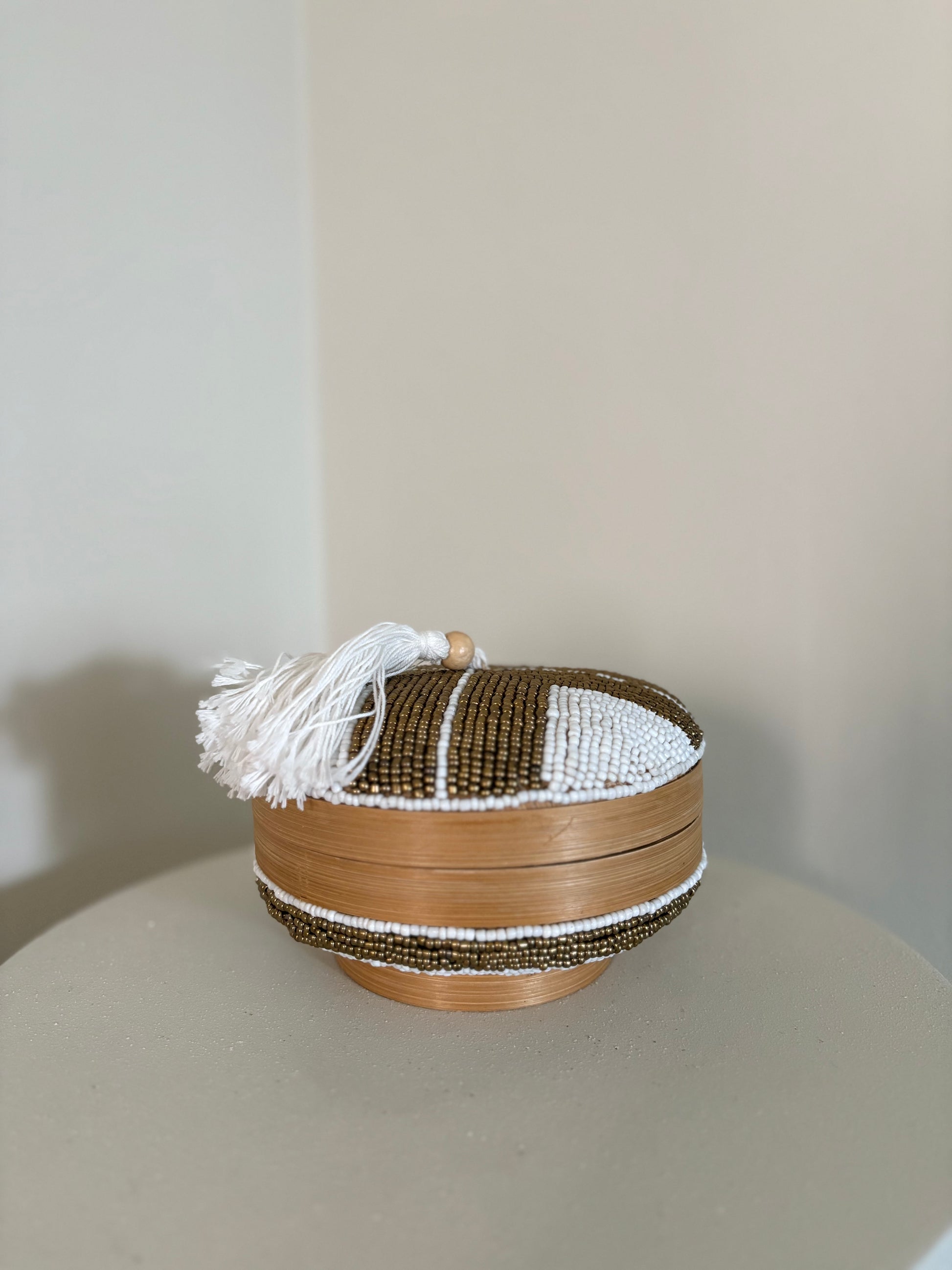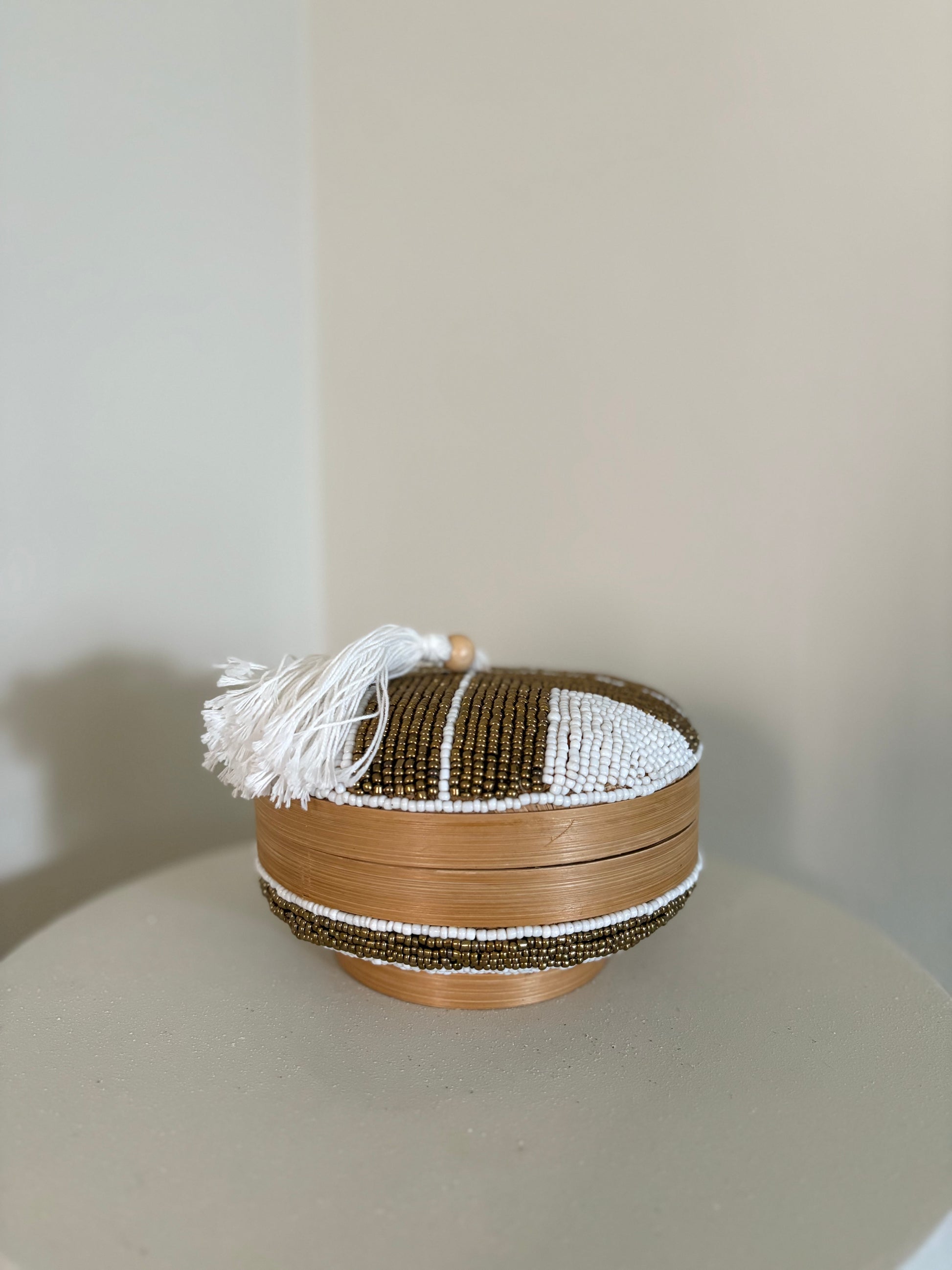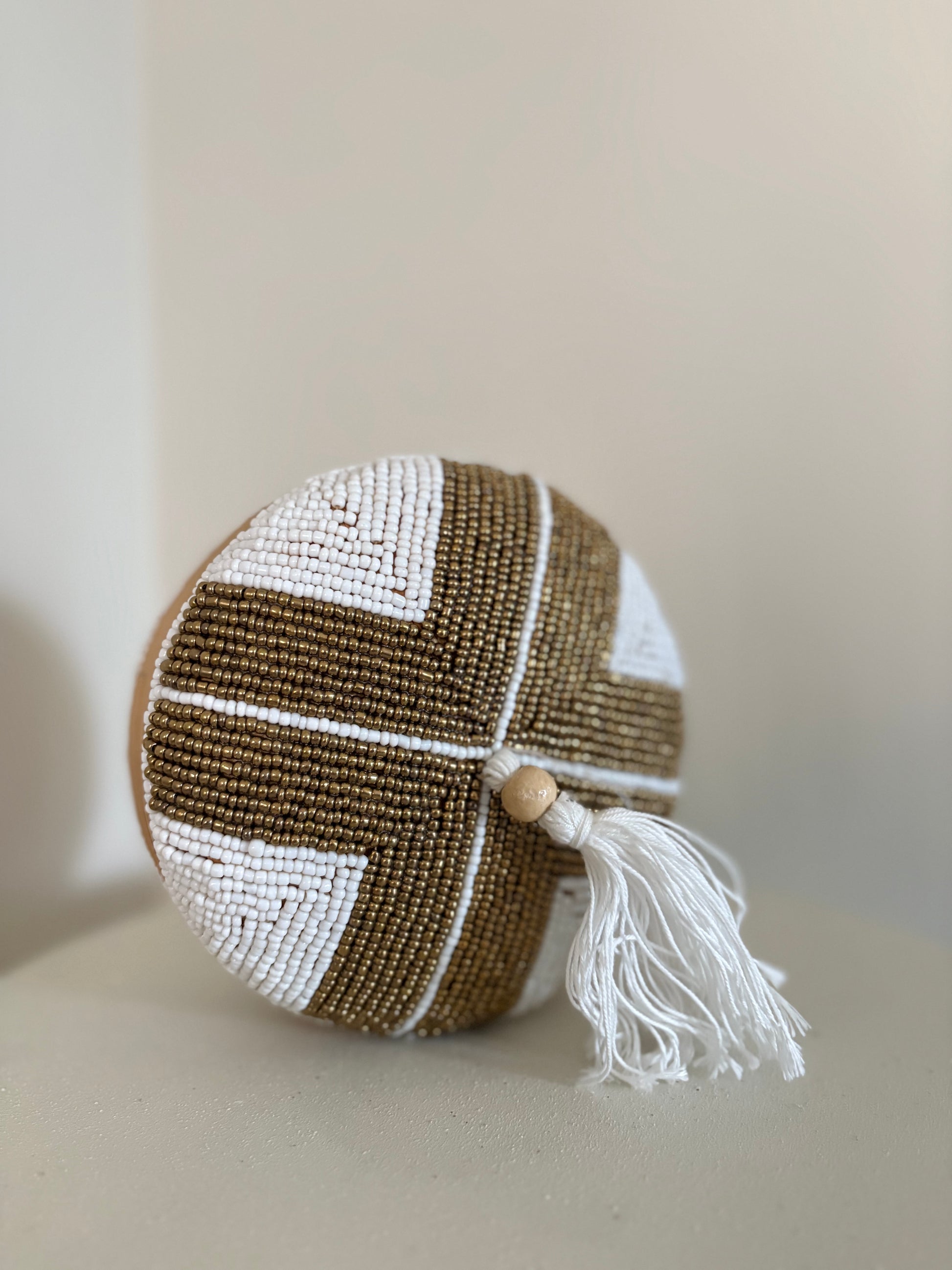 Een kralenmand of kralenmanden set voegt textuur en verfijning toe aan je interieur. De kralen zijn vaak met de hand bevestigd in patronen die symbool staan voor bescherming, geluk of harmonie – ideaal voor een serene sfeer in huis.