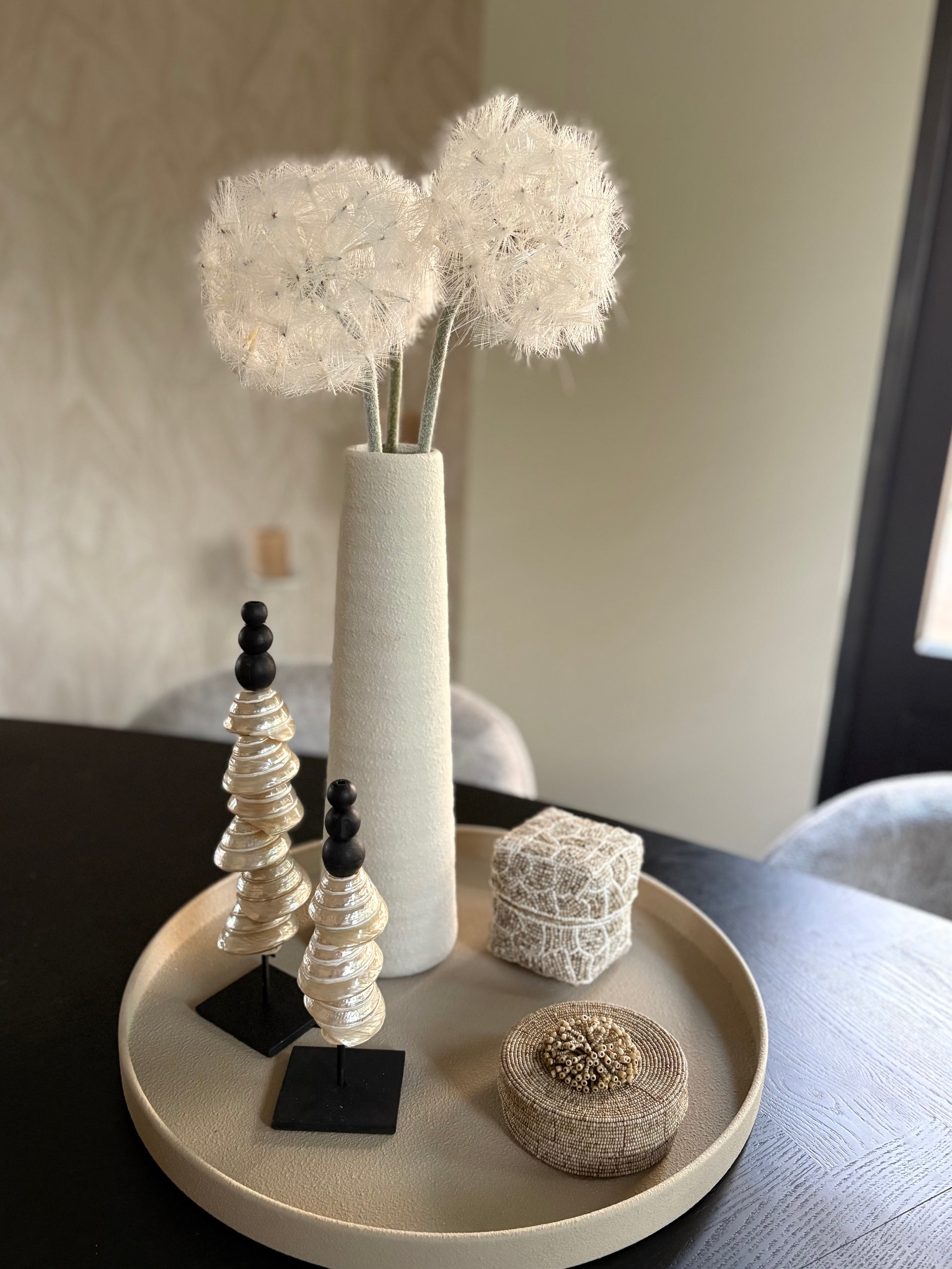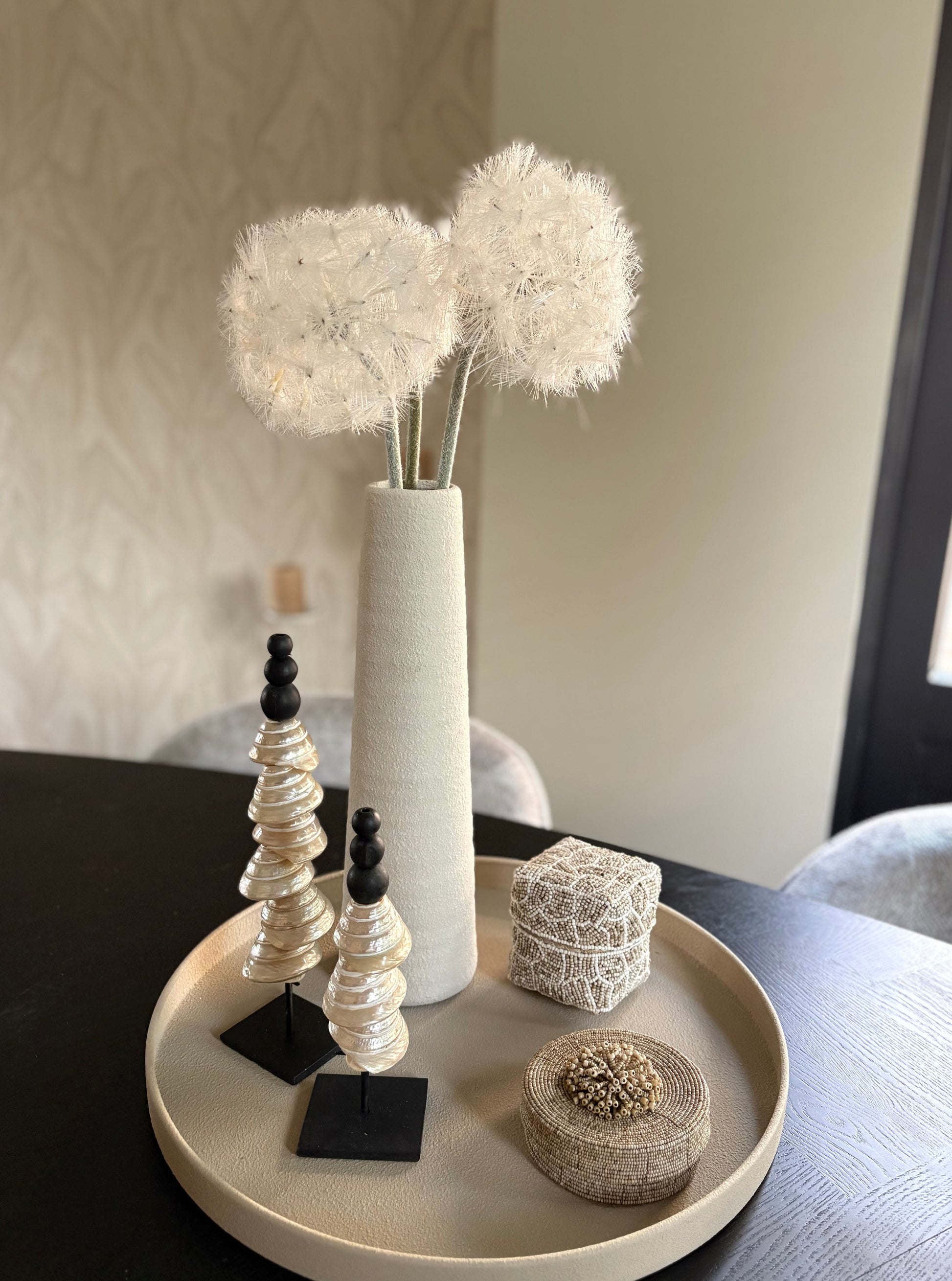 De afmetingen maken de schelpenketting perfect voor het toevoegen van een subtiele, maar impactvolle decoratie aan een dressoirsalontafelof vakkenkast. Het is ook een geweldige manier om een natuurlijk element in je interieur te integreren zonder dat het te dominant wordt.