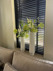 Deze vaas is perfect om te combineren met zijdenbloemen of zijden bloesemtakken. De hoge vorm biedt voldoende ruimte voor langere takken, en het strakke design accentueert de schoonheid van de bloemen zonder dat het te druk oogt. Maak het natuurlijk met beige of witte zijdenbloesemtakken of geef het een subtiele kleuraccent met gedroogde bloemen.