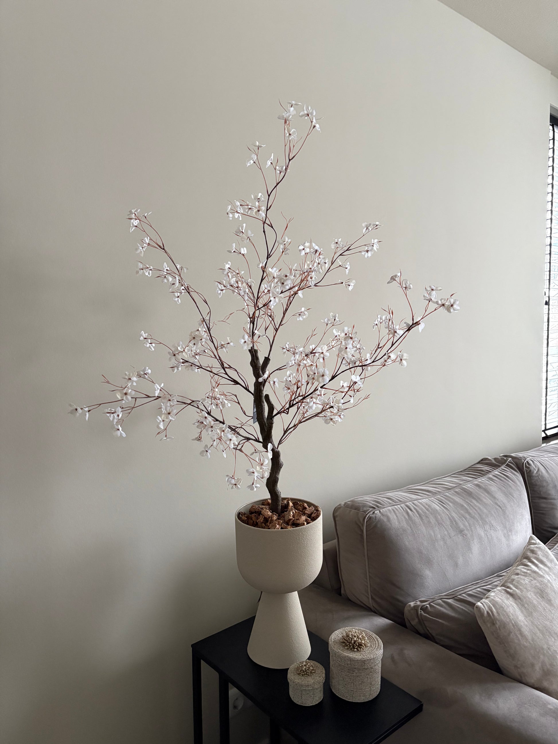 Prachtige Pyrus boom, dit leuke boompje fleurt jouw hele interieur op! Deze Pyrus boom is perfect passend bij de Japandi style, en geeft een warme look aan je interieur. De Pyrus boom heeft fijne takjes met zachte bloementjes eraan. De Pyrus boom is prachtig te combineren met onze Japandi bloempot
