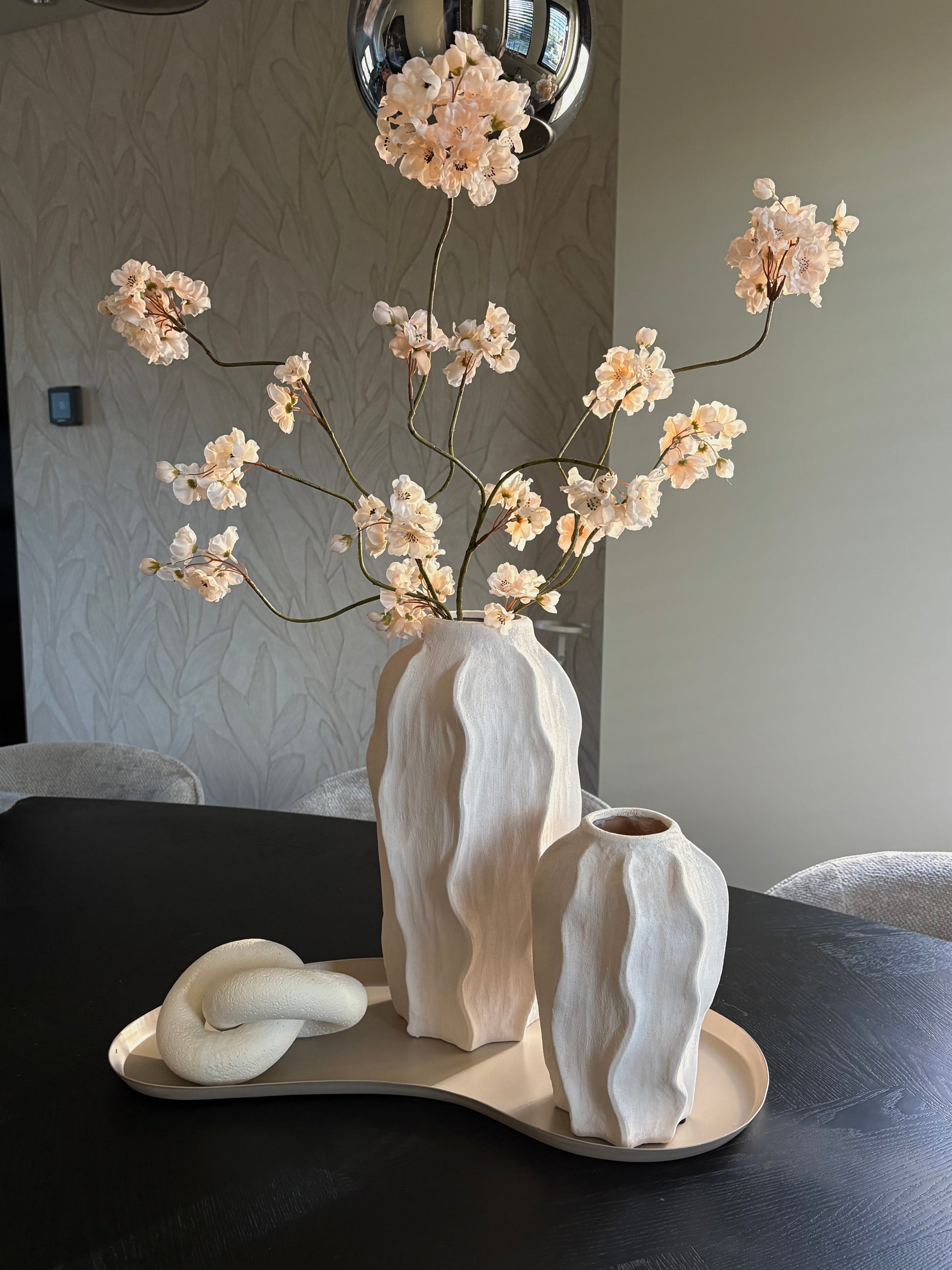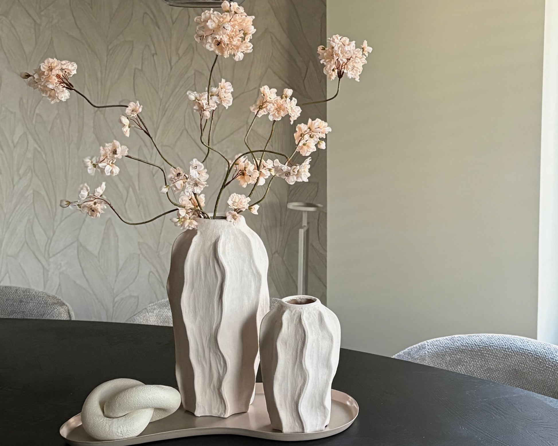 Combineer de lichtroze zijdenbloesem met een aardewerk vaas in een natuurlijke tint zoals beige of taupe. Combineer de zijdenbloesemtakken met onze Japandi vazen uit de collectie. Een perfecte combinatie van rust en stijl.
